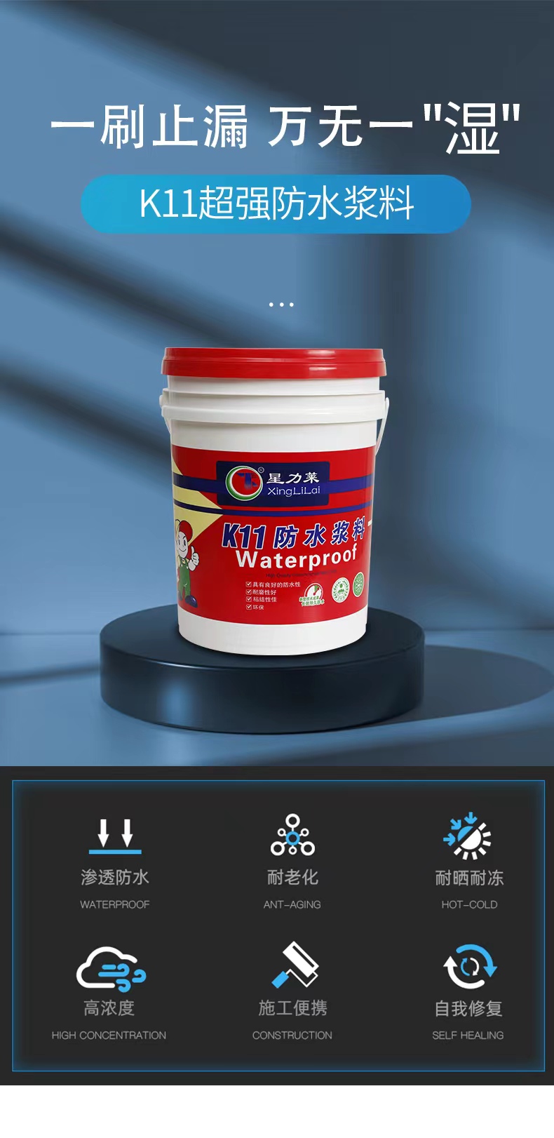 K11防水漿料是一種以抗堿的合成改性水泥基的防水材料,是建筑防水材料,其產品以操作簡易,性能優(yōu)良而超越同類產品。